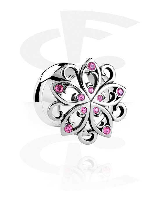 Tunel z dvojnim robom (kirurško jeklo, srebrn, sijoč zaključek) s/z cvetličnim dizajnom in Kristalni kamni
