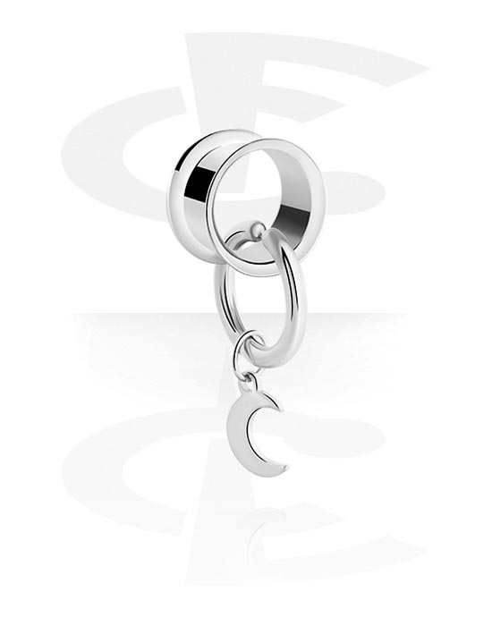 Tunel z dvojnim robom (kirurško jeklo, srebrn, sijoč zaključek) s/z Viseči obesek polmesec