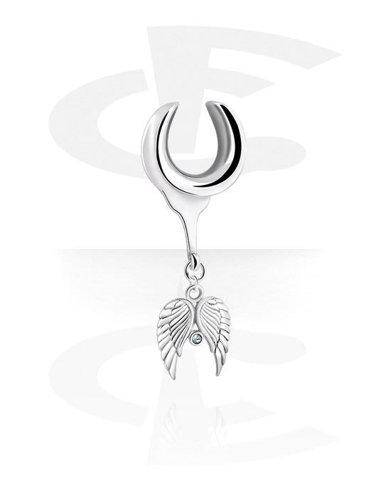 Polkrožni tunel (jeklo, srebrn, sijoč zaključek) s/z obesek krilo in Kristalni kamen