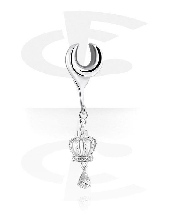 Polkrožni tunel (jeklo, srebrn, sijoč zaključek) s/z Obesek krona in Kristalni kamen
