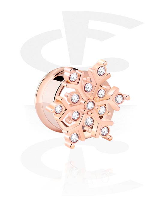 Tunel z dvojnim robom (kirurško jeklo, rožnatozlat, sijoč zaključek) s/z Dizajn snežinka in Kristalni kamni
