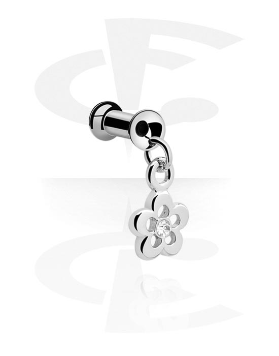 Tunel z dvojnim robom (kirurško jeklo, srebrn, sijoč zaključek) s/z obeskom rože in Kristalni kamen