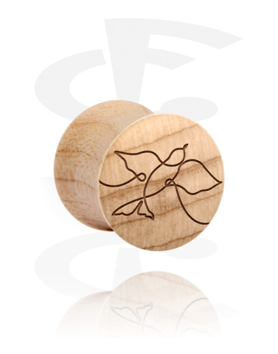 Čep z dvojnim robom (les) s/z laserskim graviranjem ptiča, narisanega z eno črto