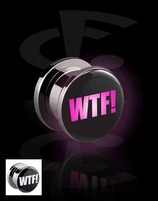 Navojni tunel (kirurško jeklo, črn, sijoč zaključek) s/z nastavkom LED in napisom »WTF!«