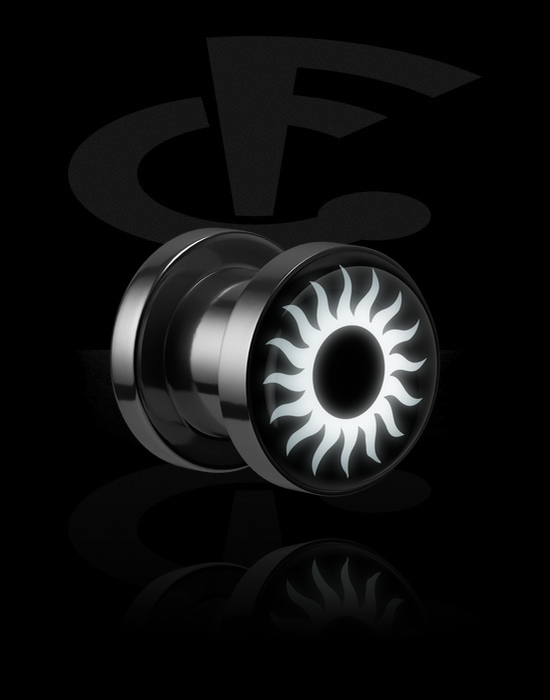 Navojni tunel (kirurško jeklo, srebrn, sijoč zaključek) s/z nastavkom LED in dizajnom sonca