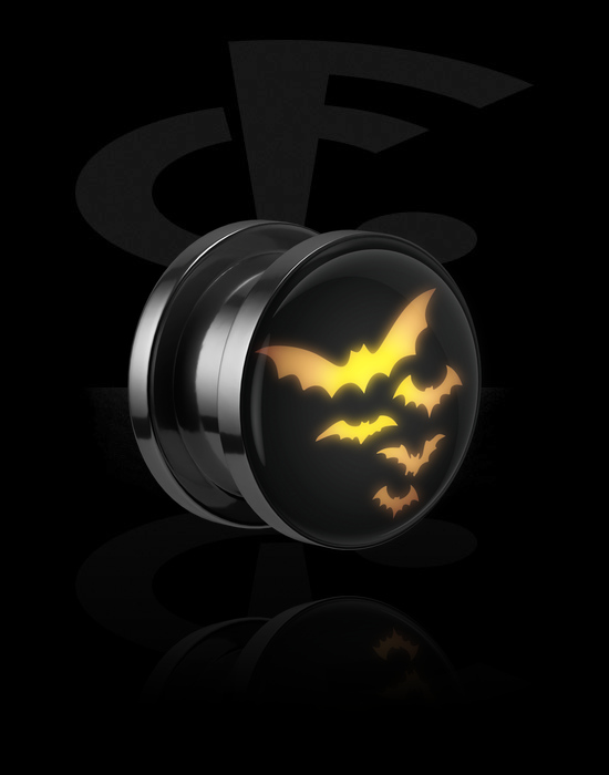 Navojni tunel (kirurško jeklo, črn, sijoč zaključek) s/z nastavkom LED in dizajnom netopirja