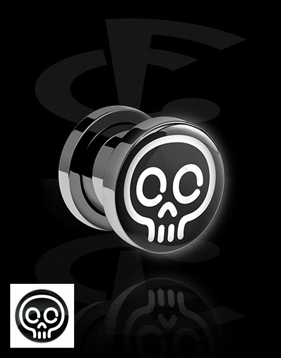 Navojni tunel (kirurško jeklo, črn, sijoč zaključek) s/z nastavkom LED in Dizajn lobanja