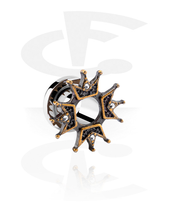 Navojni tunel (kirurško jeklo, srebrn, sijoč zaključek) s/z nastavkom s kronami in Kristalni kamni