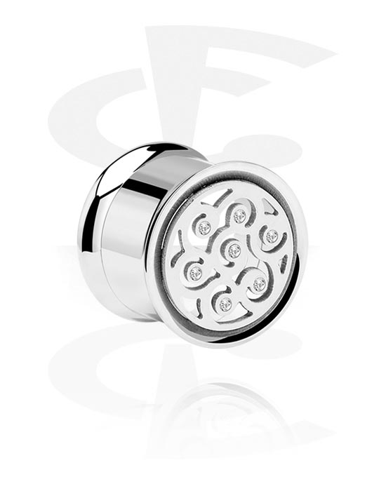 Tunel z dvojnim robom (kirurško jeklo, srebrn, sijoč zaključek) s/z Kristalni kamni