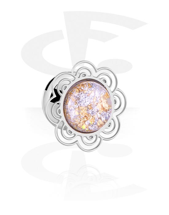 Tunel z dvojnim robom (kirurško jeklo, srebrn, sijoč zaključek) s/z cvetličnim dizajnom in bleščice