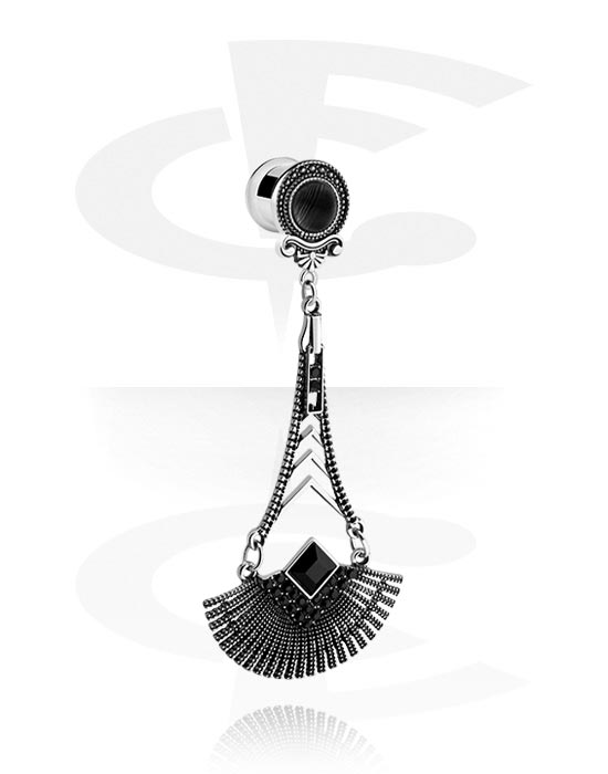 Tunel z dvojnim robom (kirurško jeklo, srebrn, sijoč zaključek) s/z vintage dizajnom in obesek