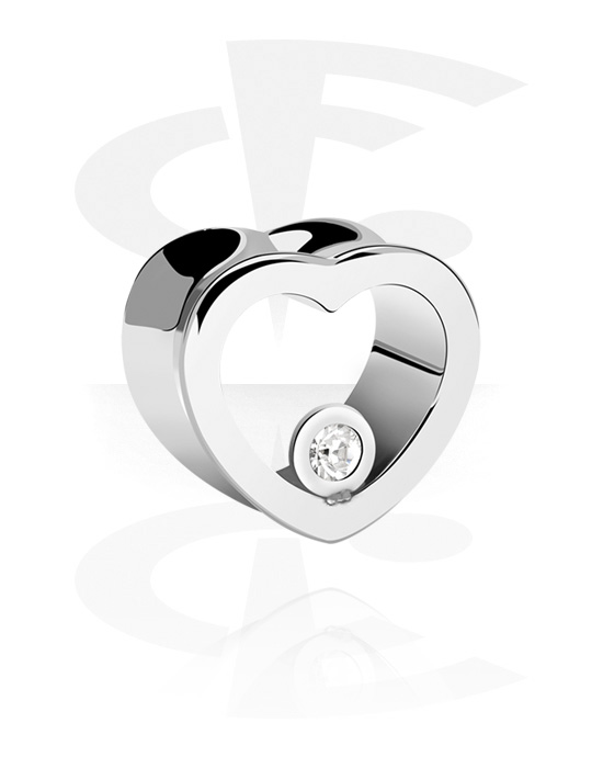 Tunel v obliki srca z dvojnim robom (kirurško jeklo, srebrn, sijoč zaključek) s/z Kristalni kamen