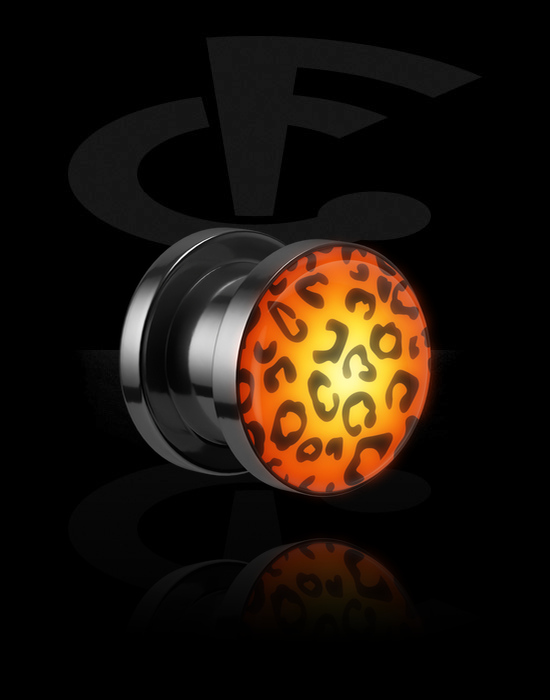 Navojni tunel (kirurško jeklo, srebrn, sijoč zaključek) s/z nastavkom LED in vzorcem leva