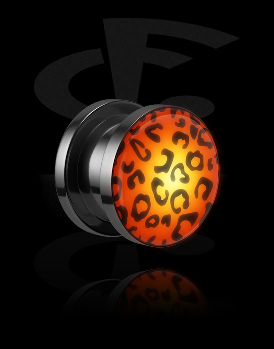 Navojni tunel (kirurško jeklo, srebrn, sijoč zaključek) s/z nastavkom LED in vzorcem leva