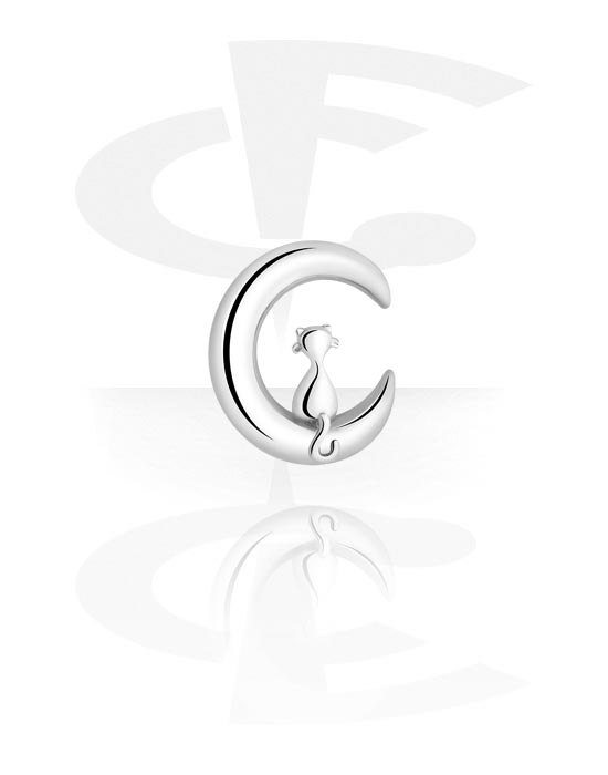 Utež za ušesa (kirurško jeklo, srebrna, sijoč zaključek) s/z Crescent in Dizajn mačka