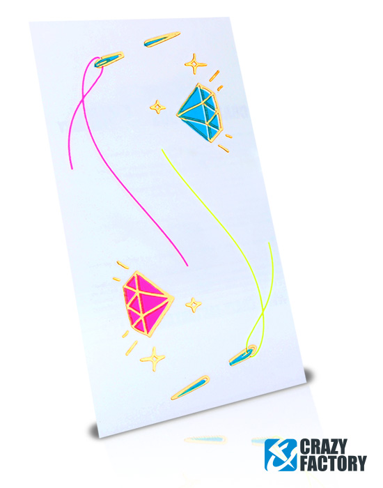 Temporary tattoo. Applied with water and holds for a couple of days. Can be removed easily. Our Neon-Tattoos glow in bright, intense colours when exposed to blacklight (UV-light). The perfect highlight for a night out!