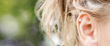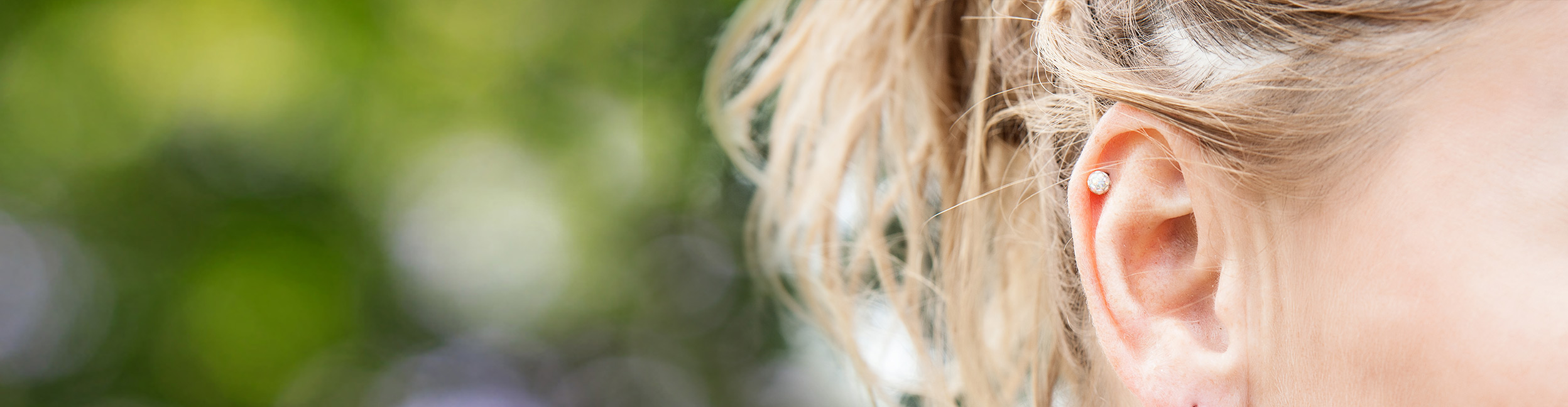 Yttre conch-piercingar ger en intensiv, slående look. Uttryck dig själv med den här trendiga och mångsidiga öronpiercingen!