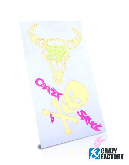 Tillfällig tatuering. Fästs med vatten och sitter kvar i ett par dagar. Kan lätt tas bort. Våra neon-tatueringar lyser i starka neonfärger när de utsätts för svartljus (UV-ljus). Perfekt på fest och på dansgolvet!