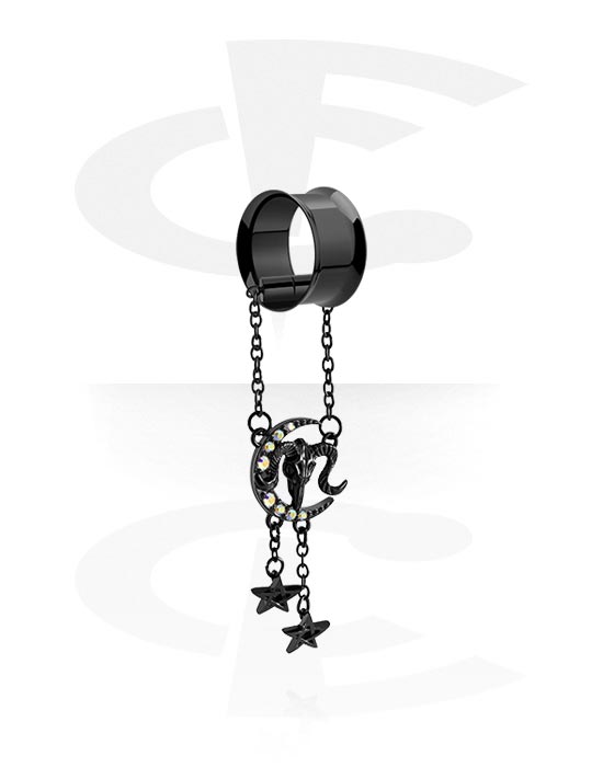 Double flared tunnel (surgical steel, black) med Half moon design och Goat head design