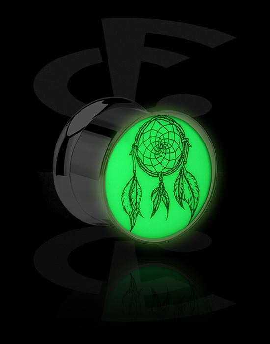 "Glow in the dark" double flared tunnel (surgical steel, silver, shiny finish) med Dreamcatcher Design