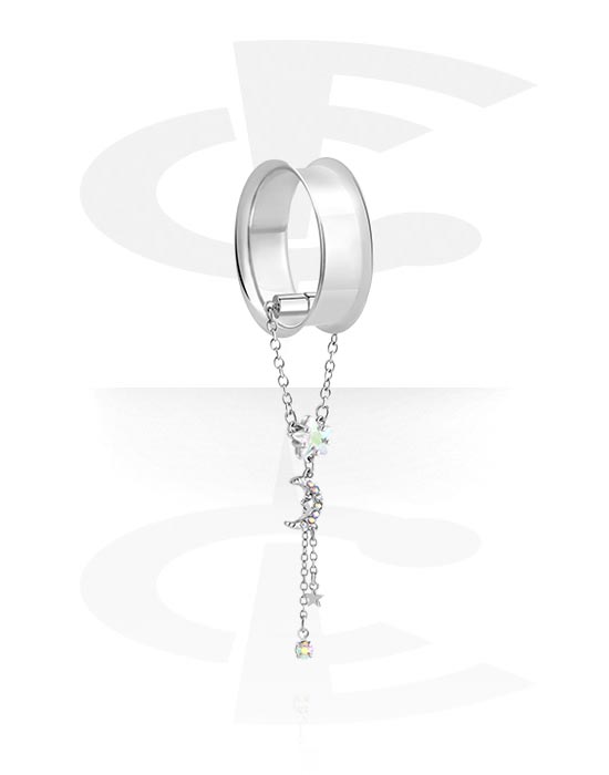 Double flared tunnel (surgical steel, silver) med kristallstjärna och Crescent Design