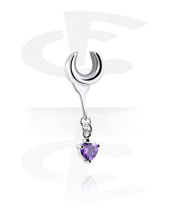 Half tunnel (surgical steel, silver, shiny finish) med hjärtehängsmycke och kristallsten