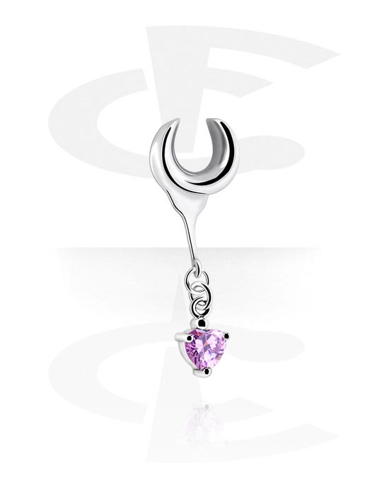 Half tunnel (surgical steel, silver, shiny finish) med hjärtehängsmycke och kristallsten