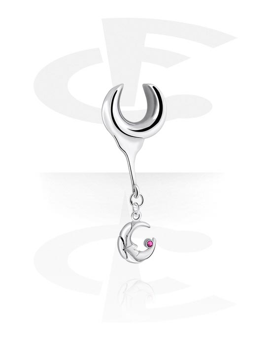 Half tunnel (steel, silber, shiny finish) med Half moon charm och kristallsten