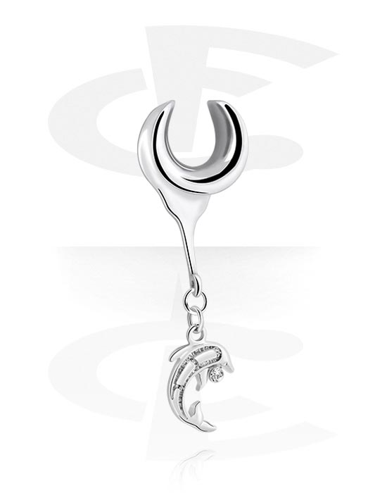 Half tunnel (steel, silber, shiny finish) med delfinhängsmycke och kristallsten