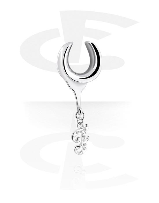 Half tunnel (steel, silber, shiny finish) med charm with letter "F" och kristallstenar