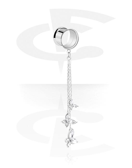 Screw-on tunnel (steel, silver, shiny finish) med fjärilssmycke och kristallstenar