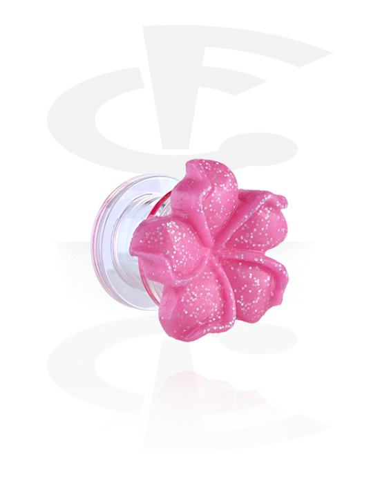 Akryltunnel med en rosa, glittrig blomma. Flower-power året runt!