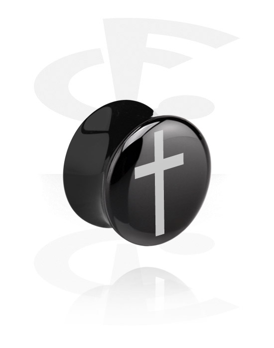 Svart flared plugg i akryl med ett vitt kors. Stiligt!