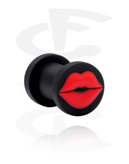 Sure to draw attention to your piercing: Black silicone plug with sexy red lips.