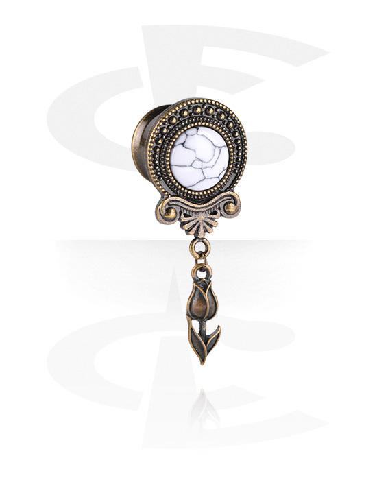 Double flared tunnel (surgical steel, antique copper) med marble design och tulip pendant