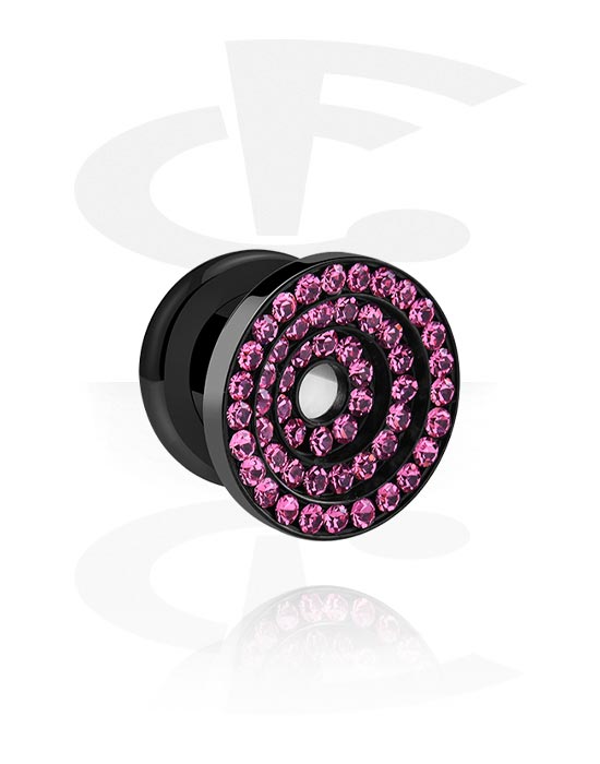 Svart Flared Tunnel i kirurgiskt stål, med hela tre rader fulla med vackra kristallstenar som finns i flera färger.