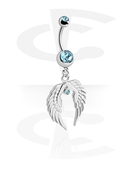 Extra lyxig banan med tre glittrande kristallstenar i olika färger och två vingar i kirurgiskt stål.