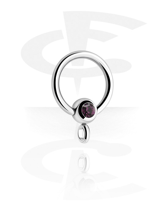 Ball closure ring (surgical steel, silver, shiny finish) med kristallsten och hoop for attachments