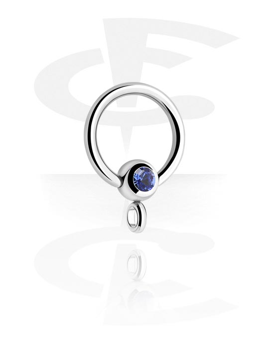 Ball closure ring (surgical steel, silver, shiny finish) med kristallsten och hoop for attachments