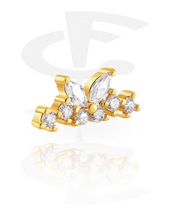 Attachment for threaded pins (plated brass, gold)) med fjärilsdesign och kristallstenar