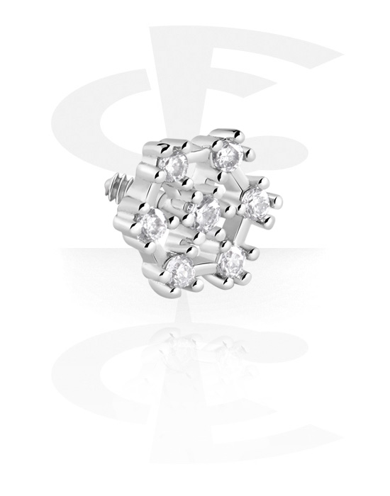 Attachment for internally threaded pins (surgical steel, silver, shiny finish) med kristallstenar