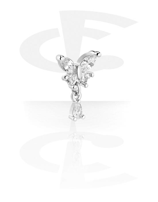 Attachment for threaded pins (plated brass, silver) med fjärilsdesign och kristallstenar