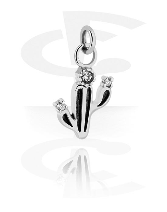 Charm (surgical steel, silver, shiny finish) med Cactus Design och kristallstenar