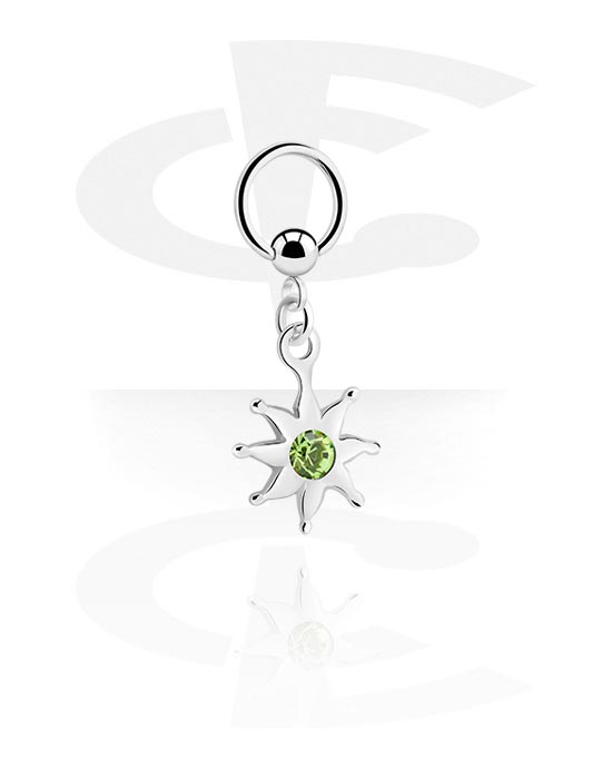 Ball closure ring (surgical steel, silver, shiny finish) med sun charm och kristallsten