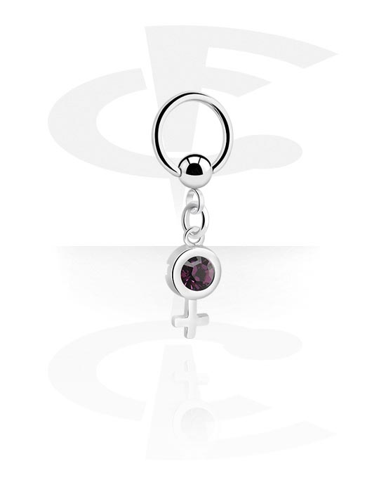 Ball closure ring (surgical steel, silver, shiny finish) med charm with Venus symbol och kristallsten