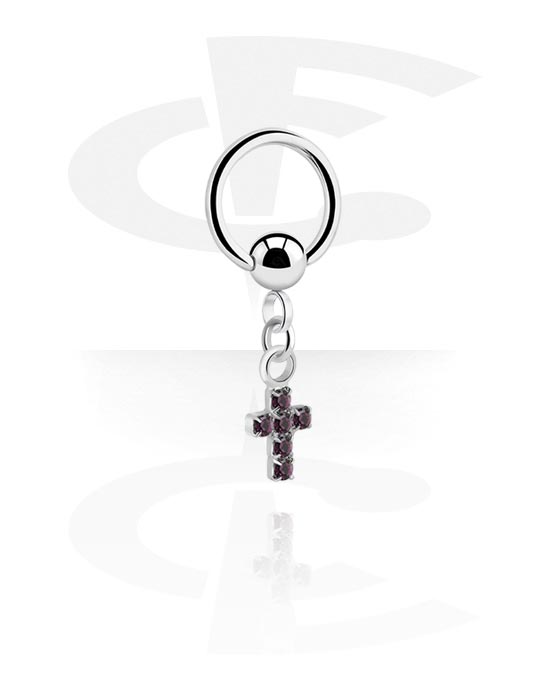 Ball closure ring (surgical steel, silver, shiny finish) med korshängsmycke och kristallstenar