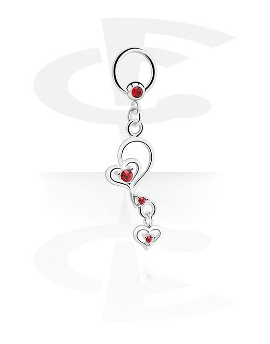 Ball closure ring (surgical steel, silver, shiny finish) med hjärtehängsmycke och kristallstenar