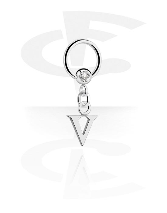 Ball closure ring (surgical steel, silver, shiny finish) med kristallsten och charm with letter "V"