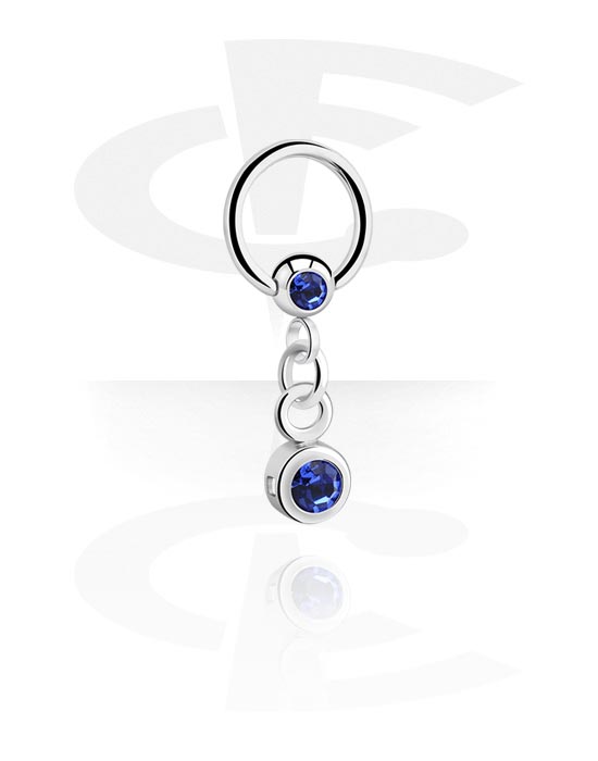 Ball closure ring (surgical steel, silver, shiny finish) med kristallsten och Berlock