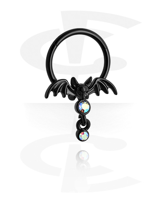 Multi-purpose clicker (surgical steel, black, shiny finish) med bat design och kristallstenar